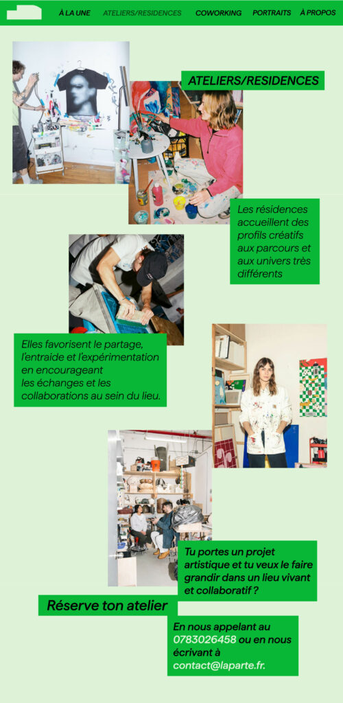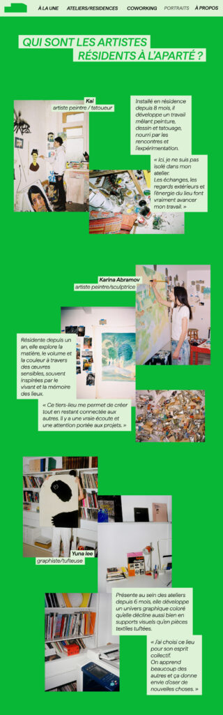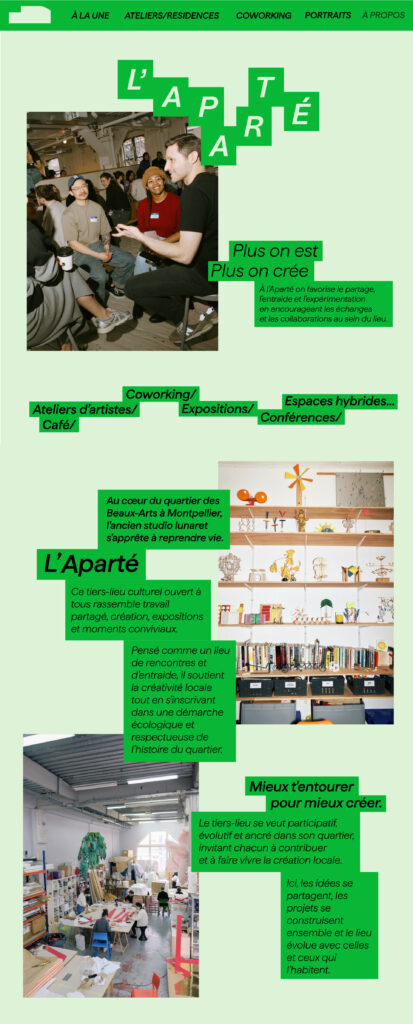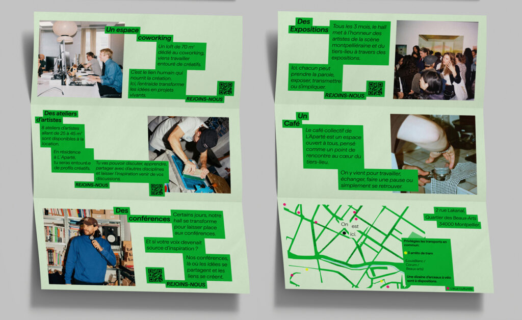 Son identité visuelle met en avant celles et ceux qui créent, avec le concept “cultiver les liens” comme fil conducteur : connecter les talents et encourager les collaborations.Ici, les créatifs sont au centre et leur art passe au premier plan, soutenu par un lieu qui révèle et valorise chaque démarche.