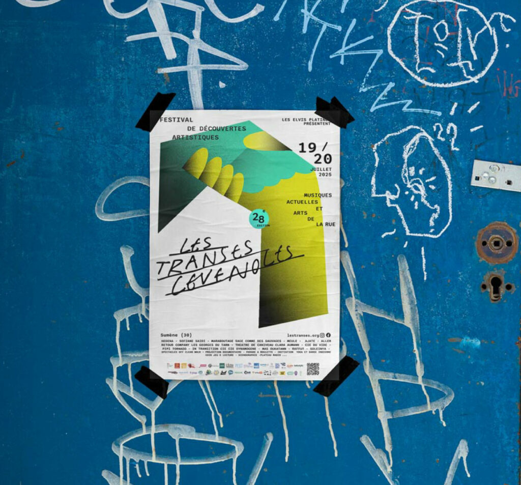 La typographie des titres, dessinée à la main, apporte une dimension brute et authentique, renforçant le caractère humain et spontané du festival.